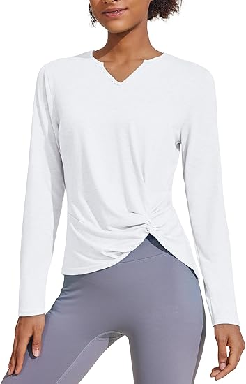 Womens Long Sleeve Shirts Workout Tops V Neck Twist Front Hiking Yoga Running Casual T-Shirt